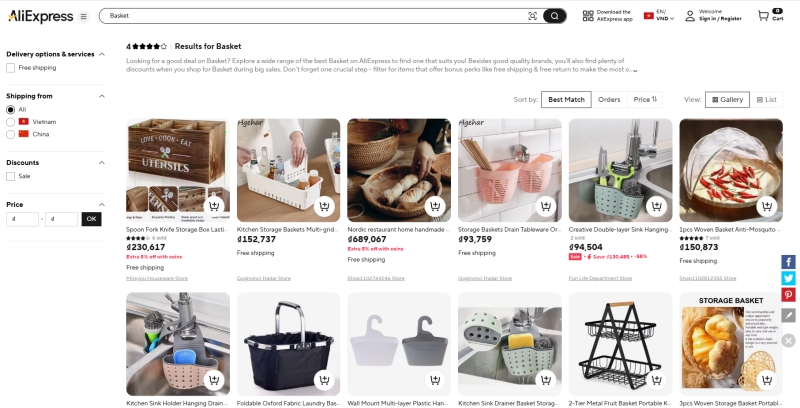 Aliexpress.com cung cấp mức giá sỉ, kể cả với số lượng sản phẩm nhỏ nhất. Tại đây, bạn có thể dễ dàng nhập hàng nội địa Trung với hơn 200 quốc gia và vùng lãnh thổ. Với hơn 6 nghìn chủng loại sản phẩm của hơn 45 ngành công nghiệp hàng đầu của Trung Quốc, chắc chắn bạn sẽ đáp ứng hoàn thiện nhu cầu của người dùng cũng như các nhà kinh doanh trên toàn thế giới.